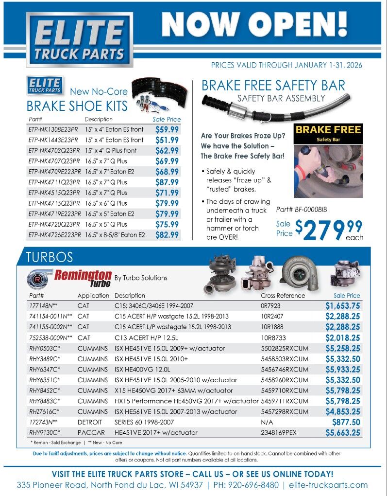 Experience the Elite Truck Parts difference today and take advantage of our Grand Opening Specials! Your satisfaction is our guarantee.
